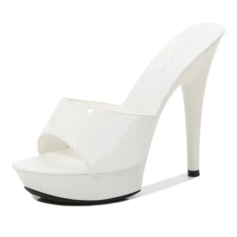 Bold and sexy mule sandals crafted in glossy patent leather with a 13CM high heel.
