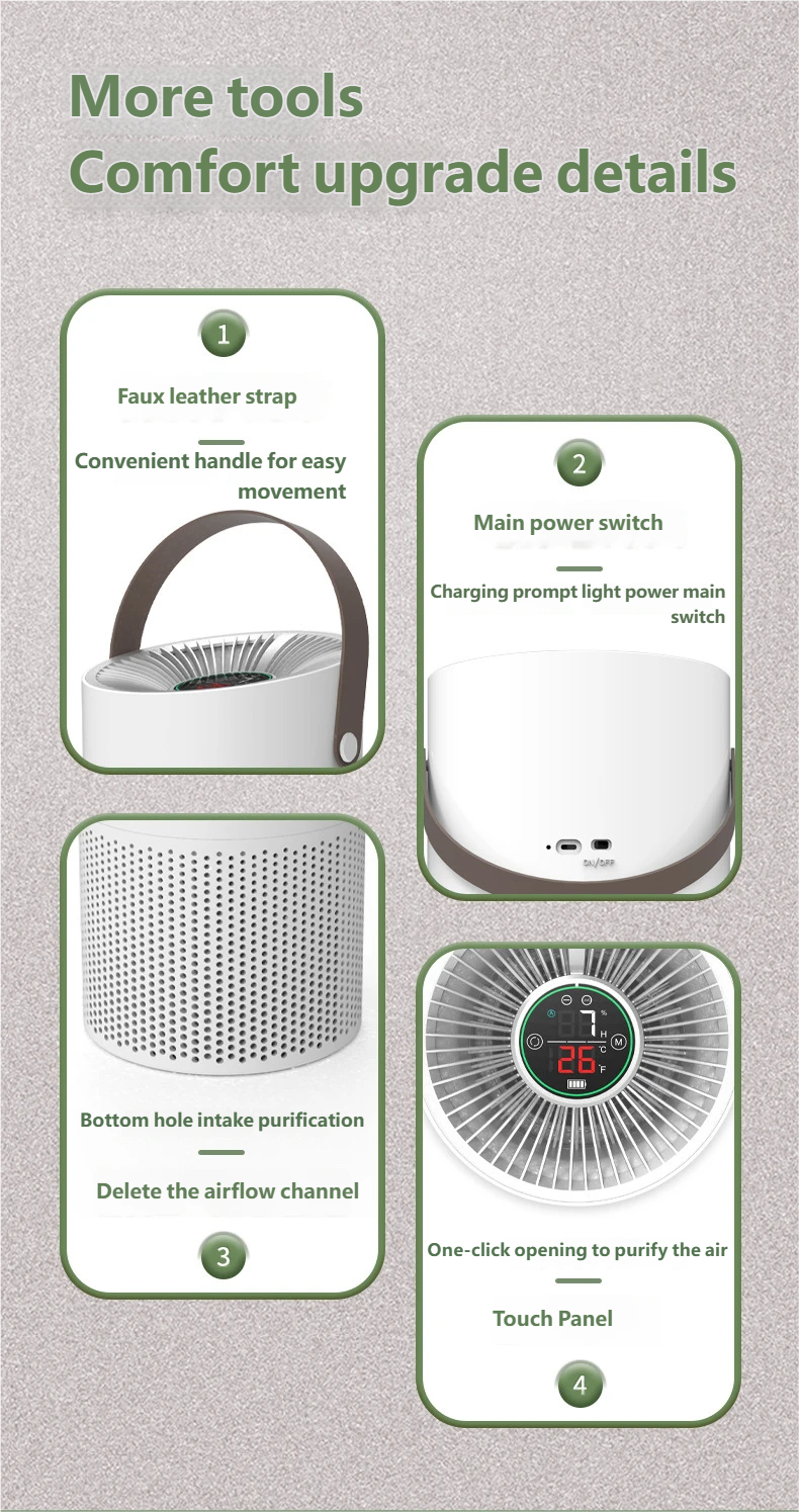 On-The-Go: Camping, car use. Portable and powerful, providing clean air anytime, anywhere.