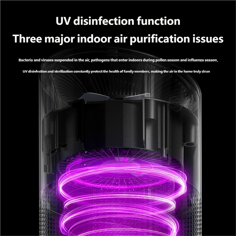 UV Sterilization, Double Protection: Integrated UVA + photocatalyst technology effectively decomposes harmful organics and kills bacteria/viruses. Combined with negative ion technology (certain models), it releases fresh air.